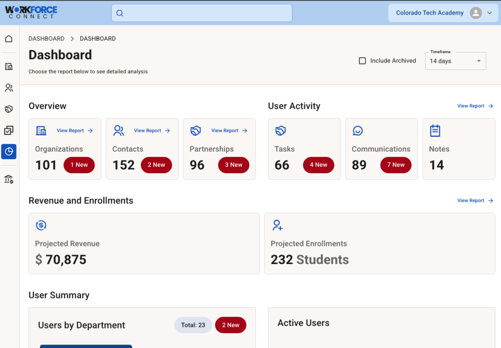 Workforce Connect is a purpose-built Workforce Partnership Management (WPM) platform designed for colleges and universities. Unlike traditional CRMs, it delivers a streamlined, partnership-focused solution that’s easy to use, highly effective, and tailored to the unique needs of college professionals.